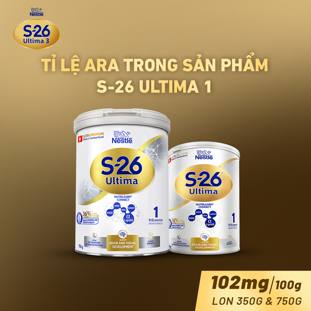 ARA (Arachidonic acid) là loại axit béo Omega 3 đóng vai trò quan trọng cho với sự phát triển trí não, hệ thần kinh và thị lực của trẻ em. Mỗi dòng sản phẩm S-26 Ultima lại chứa một tỉ lệ ARA khác nhau.Tìm hiểu thêm tại hình trên nhé!